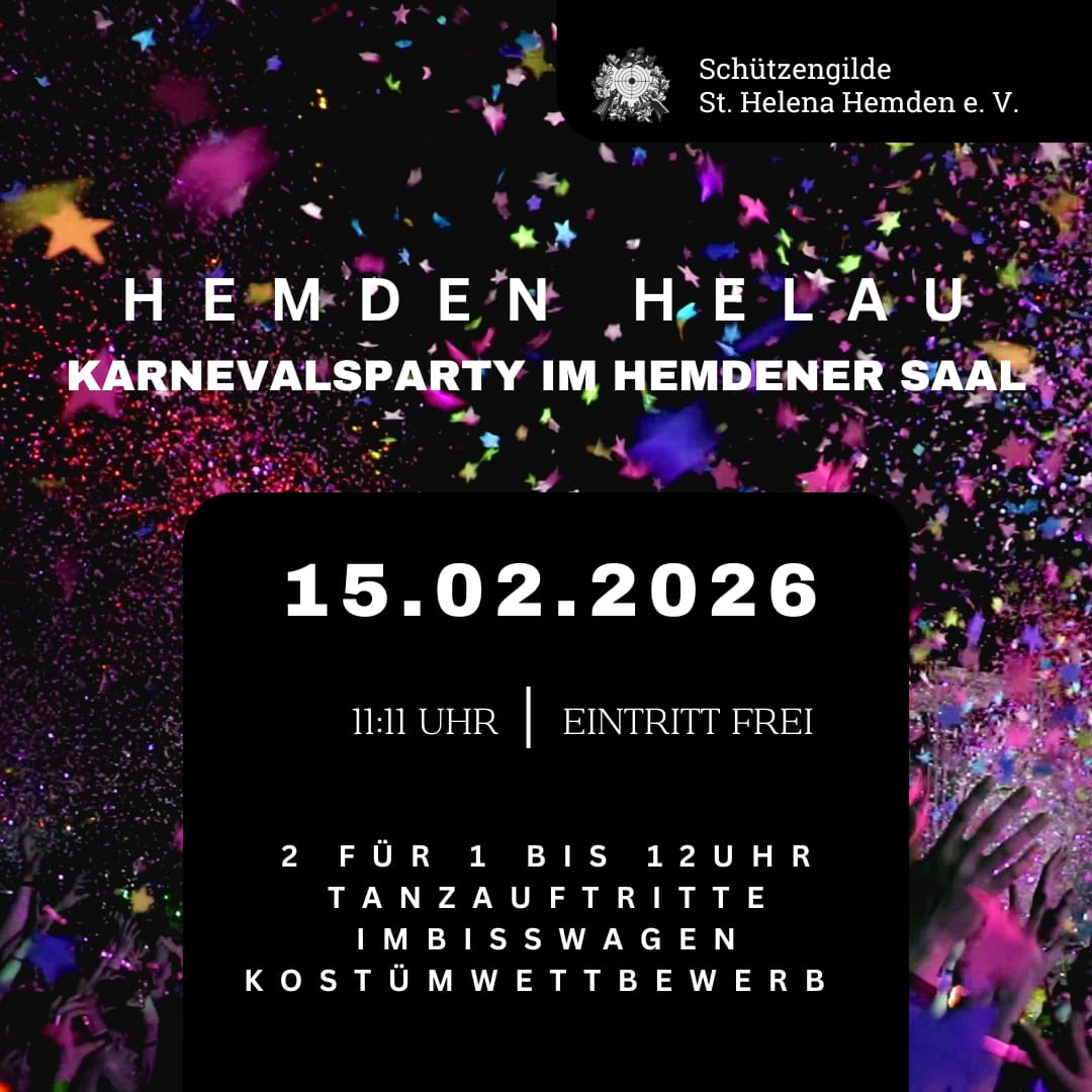 | Sonntag 15.02.2026 | 11 Uhr | Karnevalsfrühschoppen | Hemdener Saal | Eintritt frei |